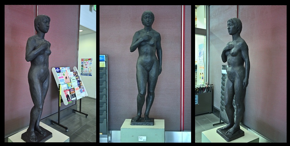 もっと工夫して撮影したいのだが、人の出入りがあるところでオジサンが一眼カメラを女性像に向けるというのは勇気が必要であり、すぐに撮影を終えたい気持ちがあるので、ただ撮っただけという証拠写真レベルにしかならなかった。一部で公共空間での女性の裸体像を撤去する動きがあるのだが、美術作品に多く触れている私からすると猥褻だとはまったく思わない。とは言え、一部に性的対象として作品を見る人もいるようなので、その辺と一緒にされたくない。裸体像を撮影する人を変な目で見ないで欲しいな。