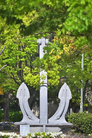 ツツジの他に目立つのはハナミズキ。赤と白が見える。出始めのケヤキの若葉も美しい。