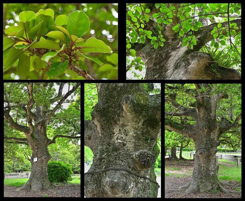 It is a Kurogane Holly that I had never been known. There are two in the place where I walked a little west from the tree in the photo above. One has a broken main trunk, and branches from there. The other one is tall, but there is no branch on one side, which seems to be the effect of the atomic bomb. |