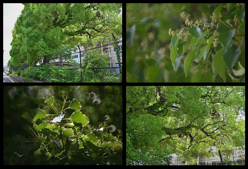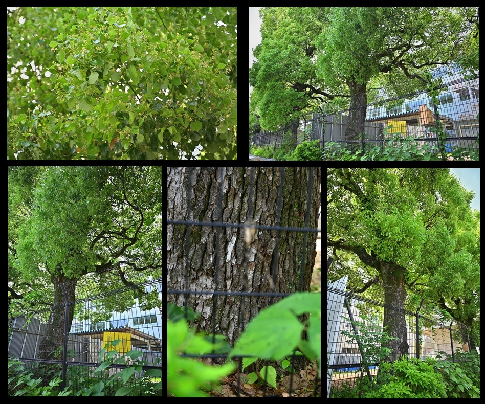 樹高もあって樹冠も大きく元気そうなクスノキ4本が学校北側の通りに面して並んでいる。