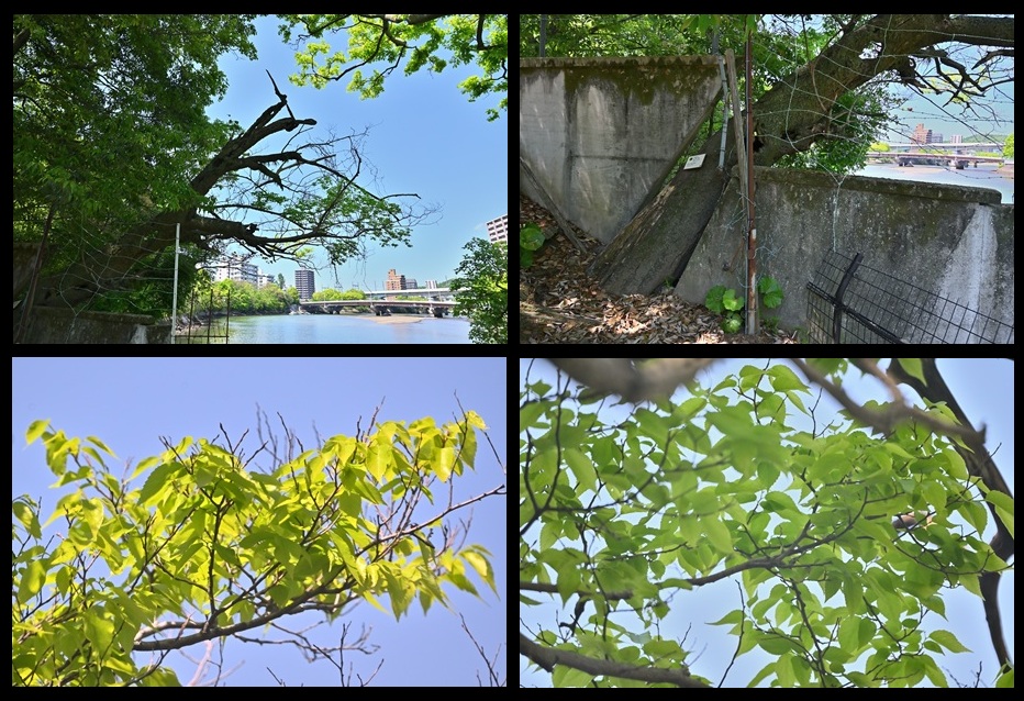 ![]() 縮景園の外からも撮影できるようなので、今回初めて訪れてみた。 なるほど〜こちら側に向かって斜めに伸びているので、この方が樹形は分かりやすいかもしれない。しかし、「痛い」雑草が多いので、近づくのに困る。近づき過ぎて川に落ちないように。 |
