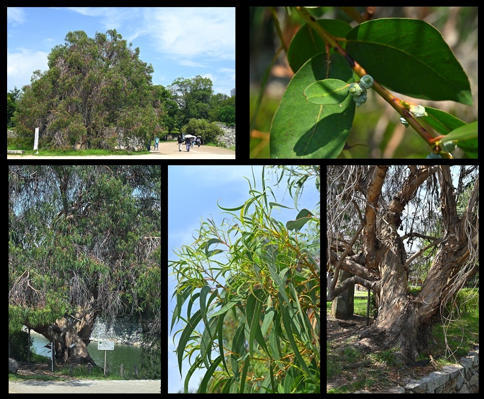This year, I’ve been visiting Hiroshima Castle every two weeks, Though the tree stands in plain sight, few seem to notice it. High in the branches, more buds wait. It may be Eucalyptus globulus (subspecies bicostata), once widely planted